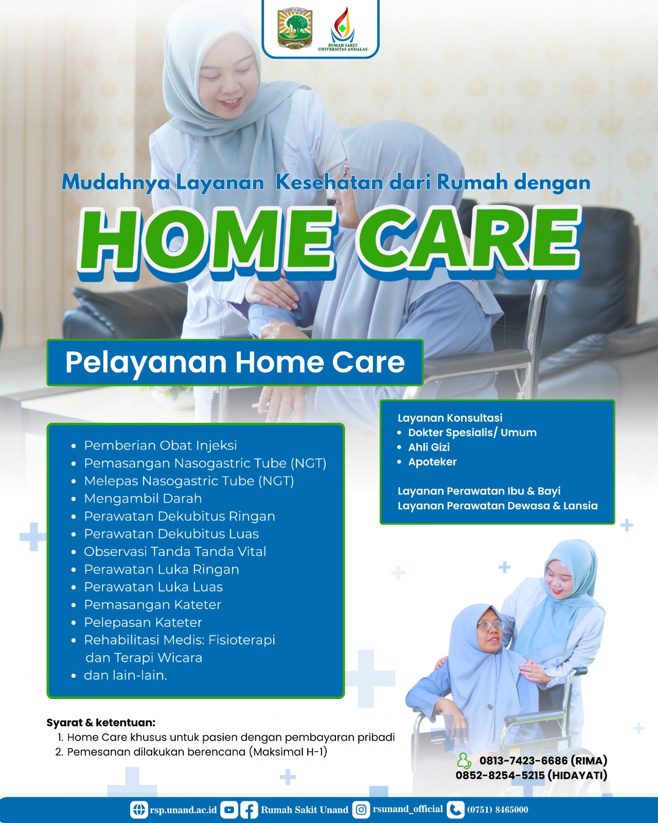 RS UNAND hadir lebih dekat dengan pasien dengan melakukan kunjungan pelayanan langsung ke rumah pasien. Pasien dapat menerima layanan kesehatan dengan nyaman dengan tenaga kesehatan yang ramah dan profesional.